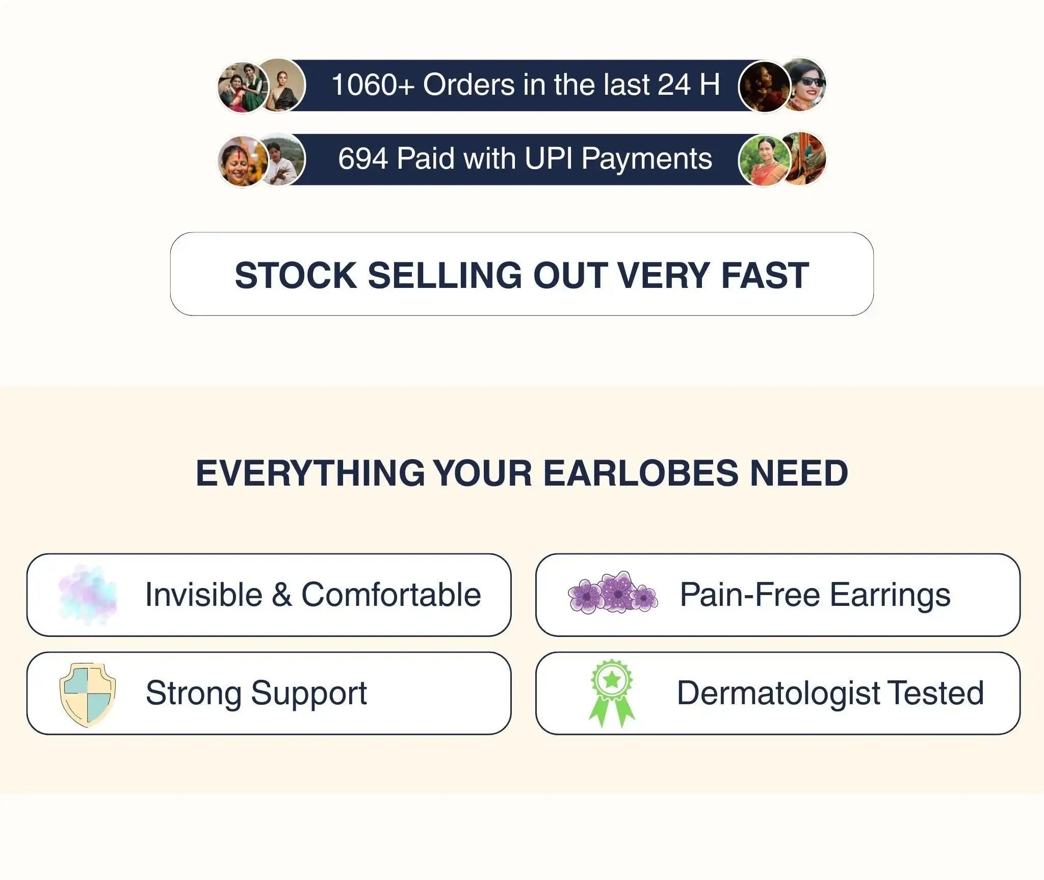 They stick behind your earlobe and provide a lifting base for your earrings. This helps distribute the weight and reduces strain on your piercing.